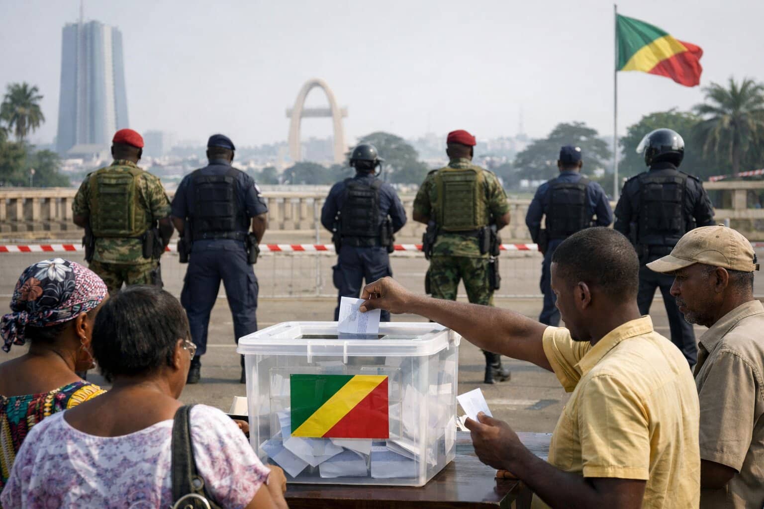 Dans les quartiers traditionnellement jugés « sensibles » comme Talangaï (6e arrondissement) ou Makélékélé (1er arrondissement), la présence de la Force publique est particulièrement visible. Des checkpoints fixes et des patrouilles mobiles quadrillent les ruelles pour s’assurer qu’aucun acte de vandalisme ne vienne entacher le processus. « Nous ne protégeons pas seulement des urnes, nous protégeons le droit des mères de famille à aller voter sans crainte d’être agressées », nous confiait ce matin un officier de gendarmerie en poste à Bacongo.