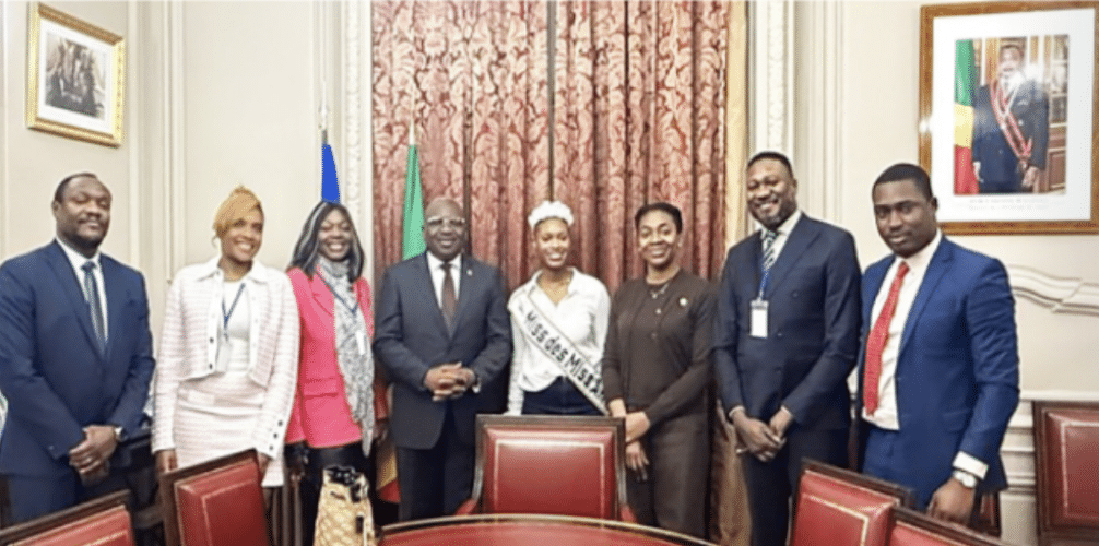 Le ministre conseiller Armand Rémy Balloud-Tabawé a reçu, à la demande de l’ambassadeur Rodolphe Adada, la présidente du Comité Miss des Miss Africa, Evy Souka, accompagnée de Ted Morgan et Alberta Nkounkou. L’audience s’inscrit dans la volonté de la représentation diplomatique congolaise à Paris de maintenir un lien actif avec les acteurs culturels et entrepreneuriaux de la diaspora.
